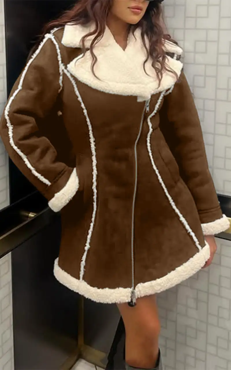 Women's Elegant Composite Plush Contrast Color Slim Fit Jacket