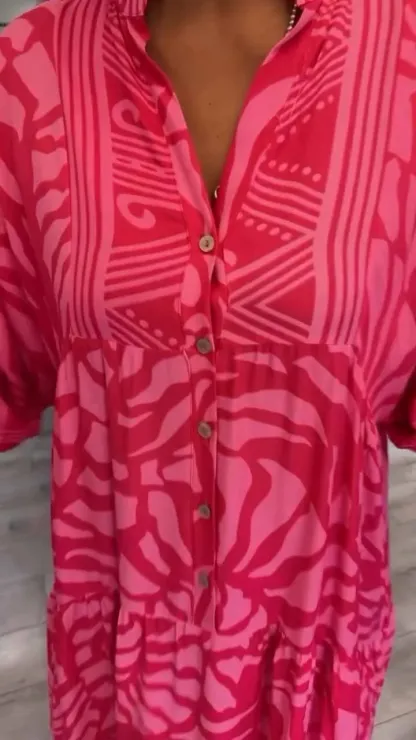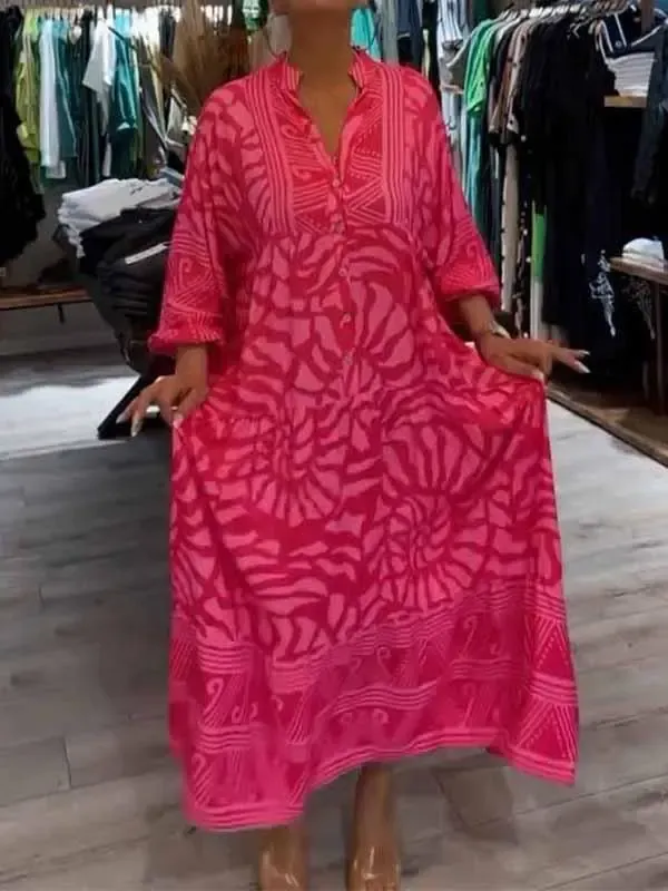 Women's Elegant Maxi Dress Plus Size V-neck Printed Loose Dress