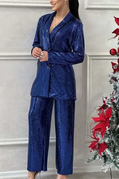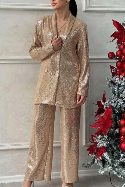 Women's Elegant Party Slim Fit Shiny Two Piece Set