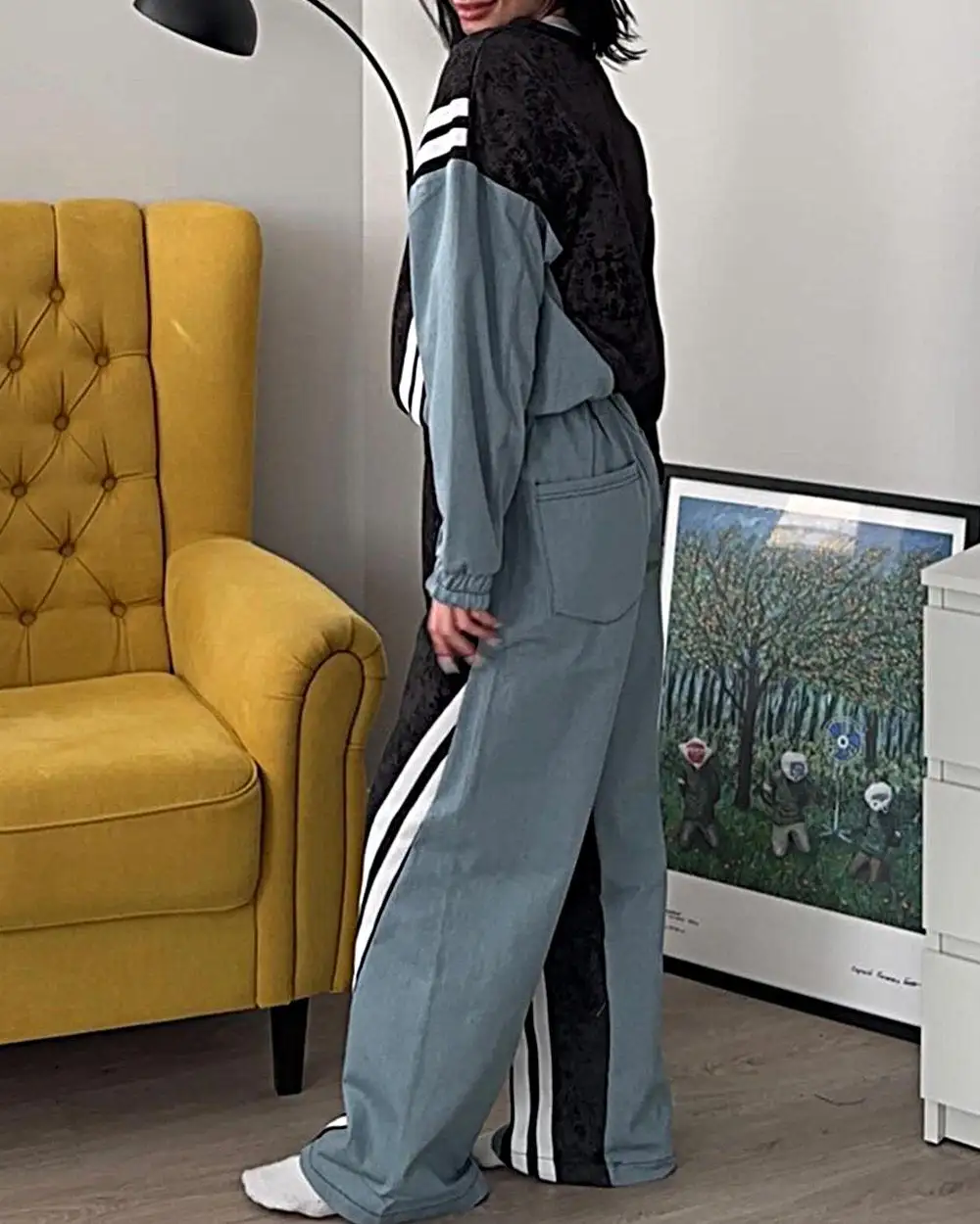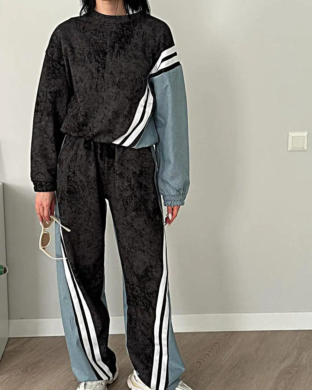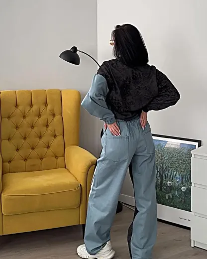 Women's Fashion Stitching Contrast Color Casual Suit