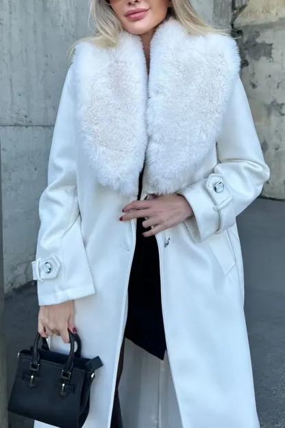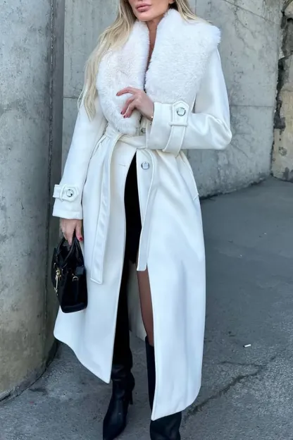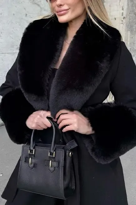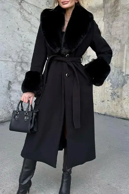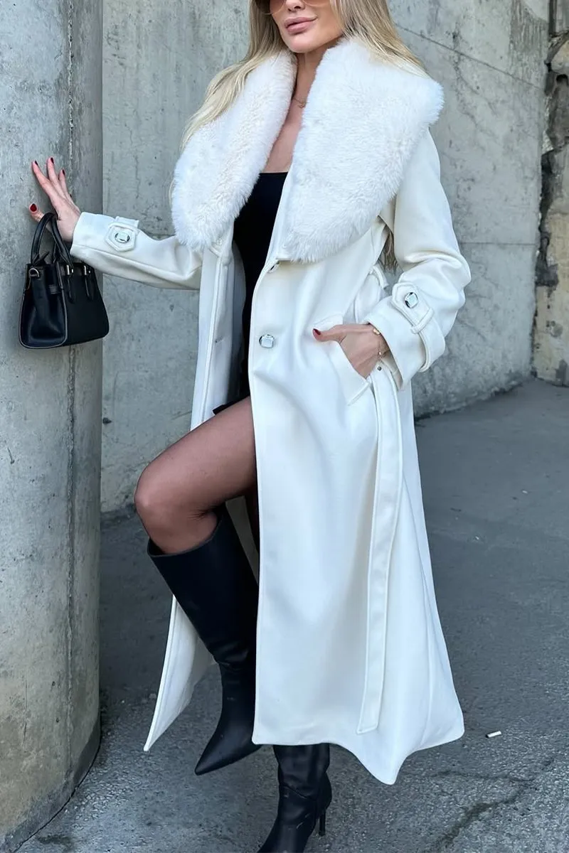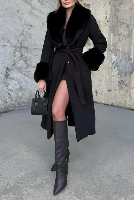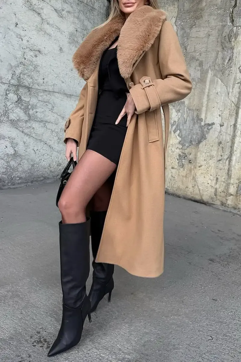 Women's Fashion Warm Fur Lapel Long Woolen Coat