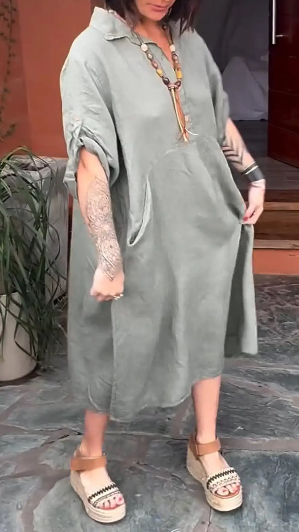 Women's Hooded Cotton and Linen Short-sleeved Casual Dress