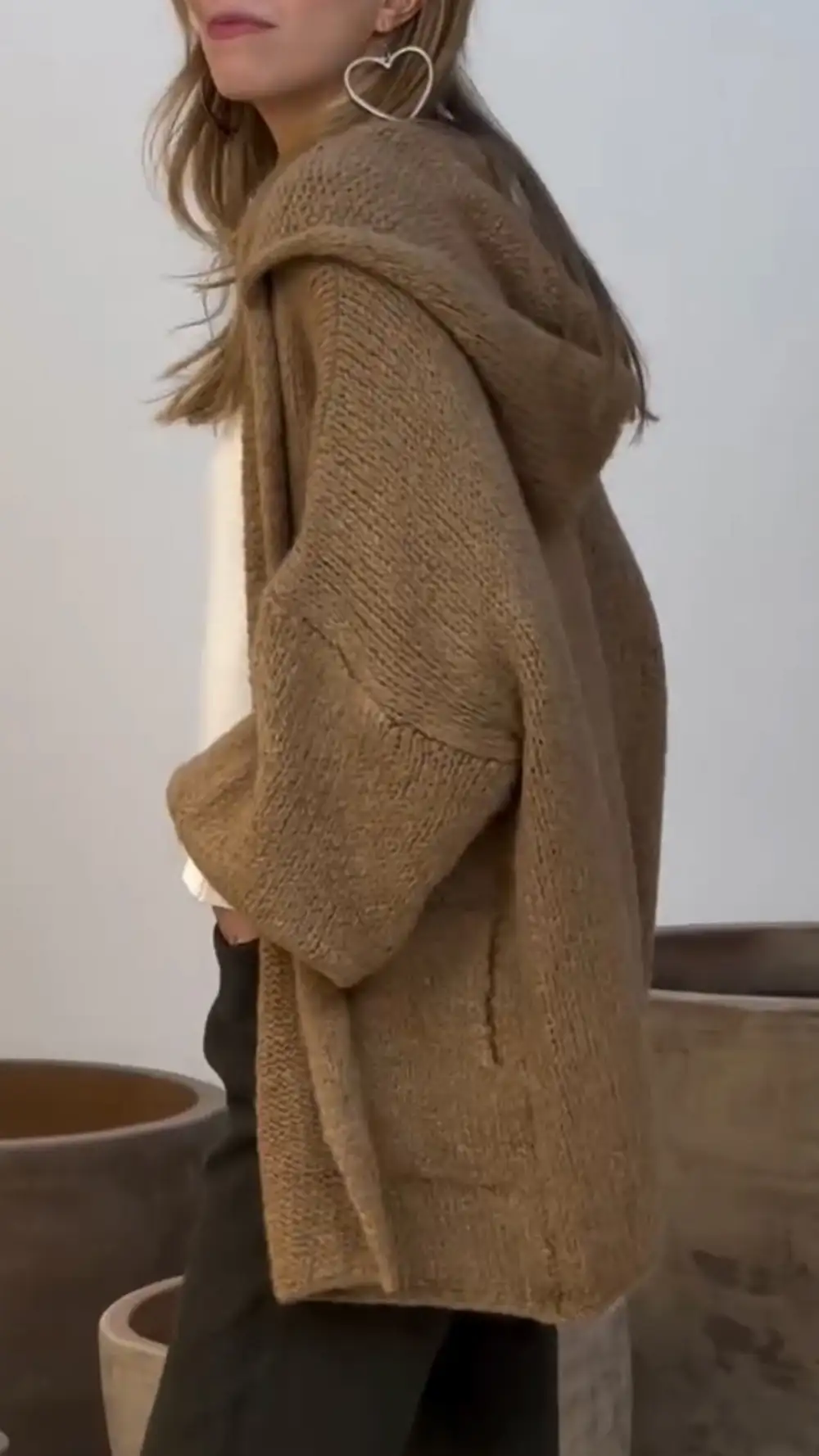 Women's Hooded Long-sleeved Knitted Casual Tops Jacket