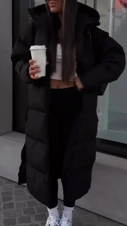 Women's Hooded Zippered Casual Long Warm Cotton Coat