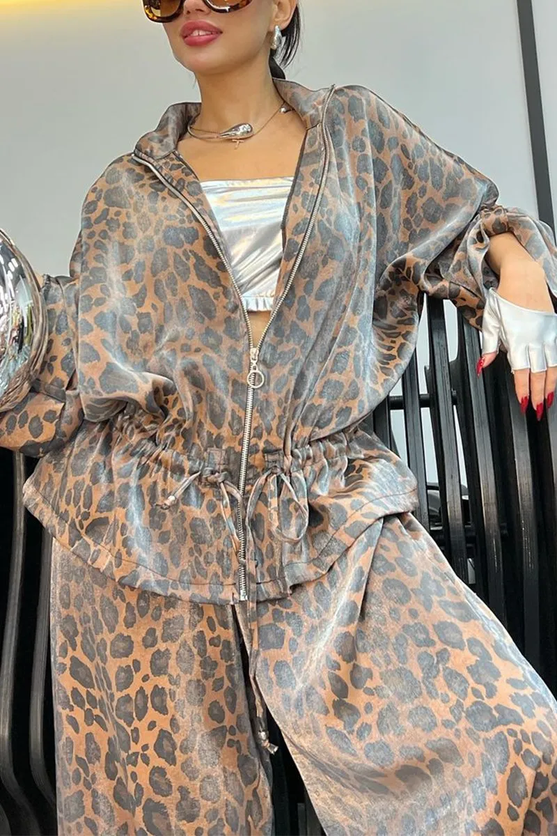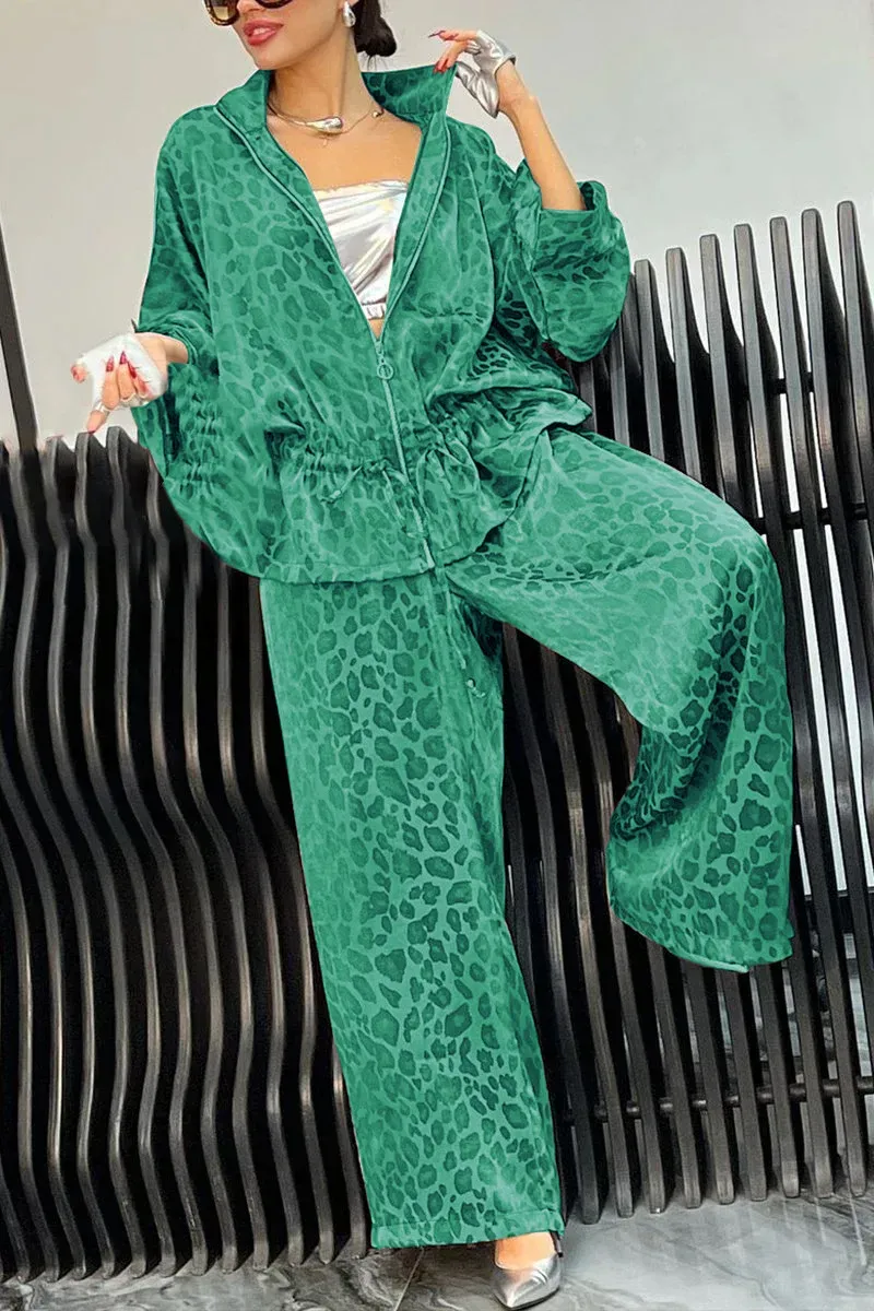 Women's Lapel Mid Sleeve Leopard Print Casual Suit