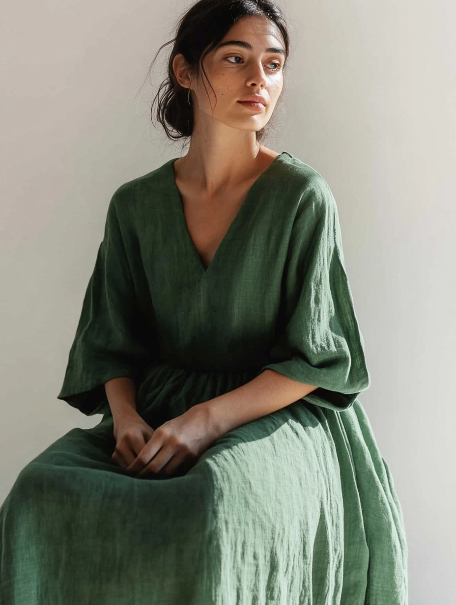 Discover timeless minimalism with our plain cotton-linen dress — breathable, elegant, and easy to wear.
