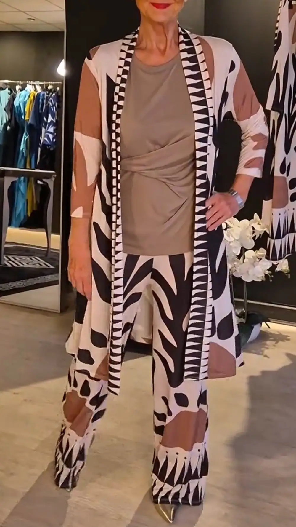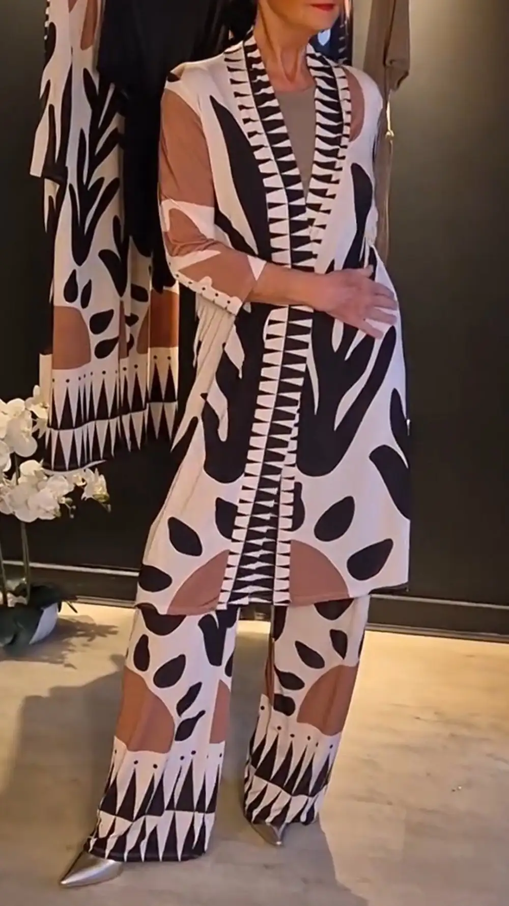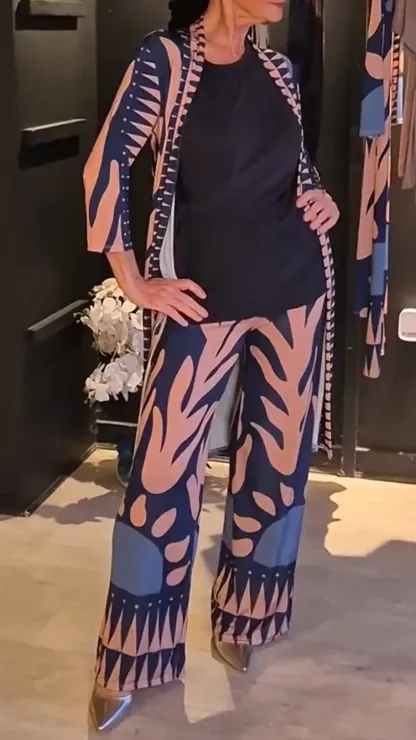 Women's Mid-sleeve Printed Cardigan Casual Suit