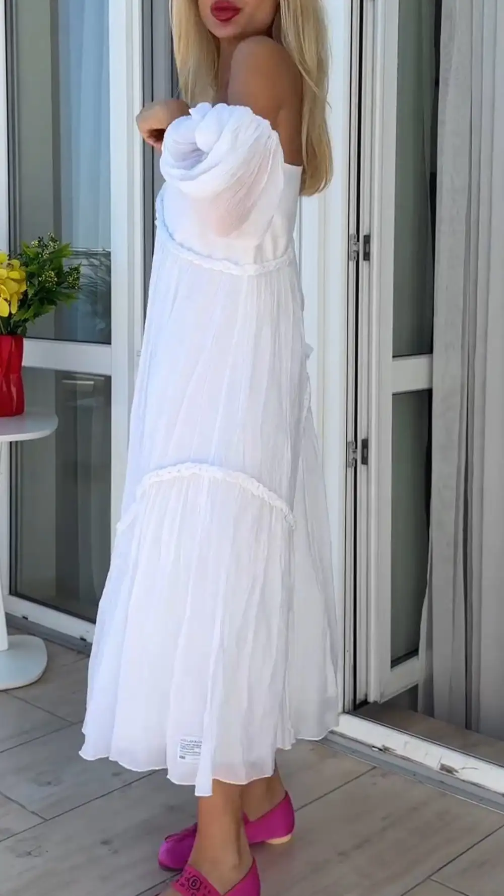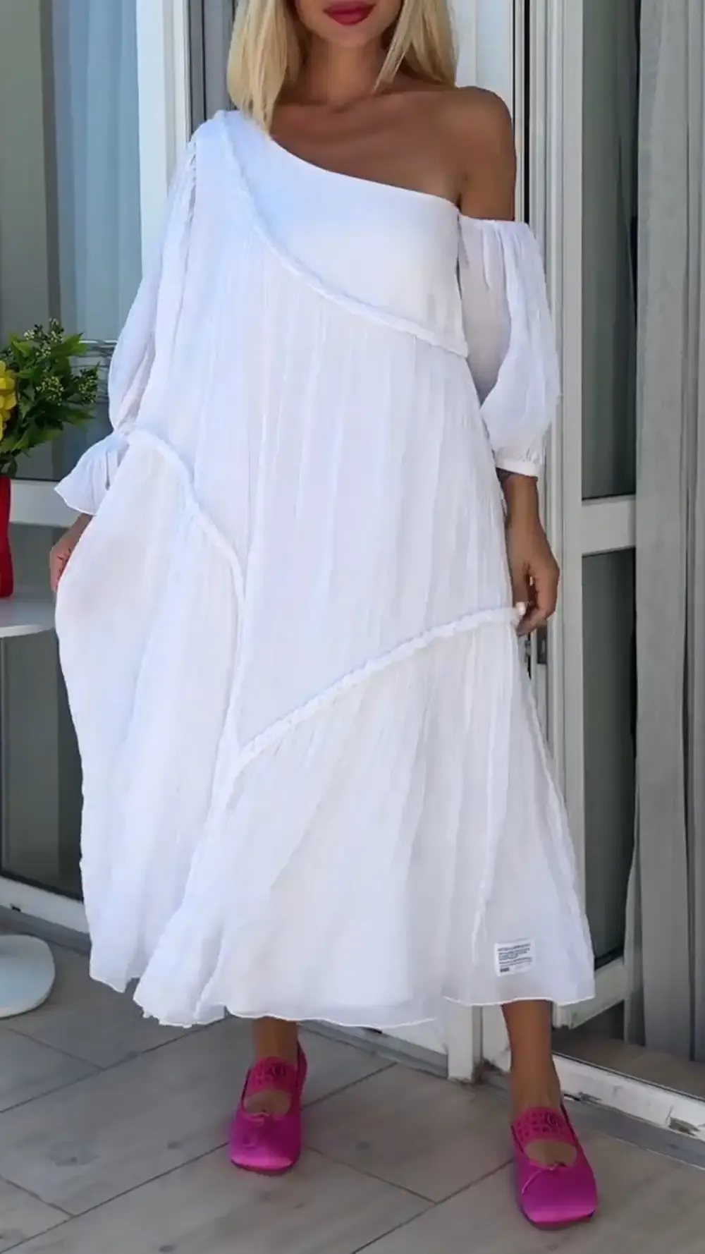 Women's One-shoulder Mid-length Sleeve Multi-layered Dress