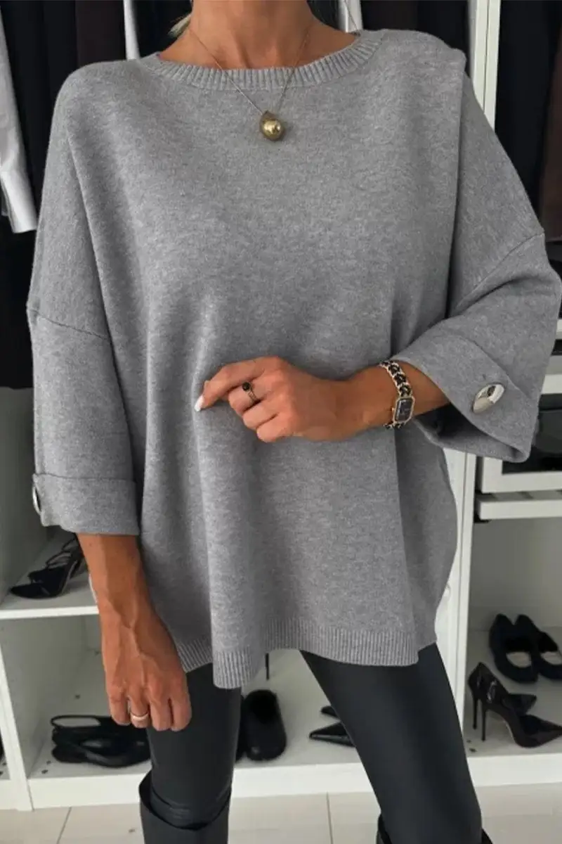 Women's Round Neck Mid-sleeve Knitted Casual Top
