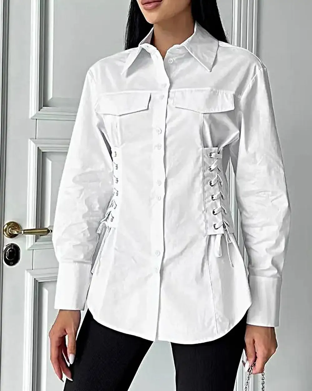 Women's Solid Color Strappy Casual Shirt Top