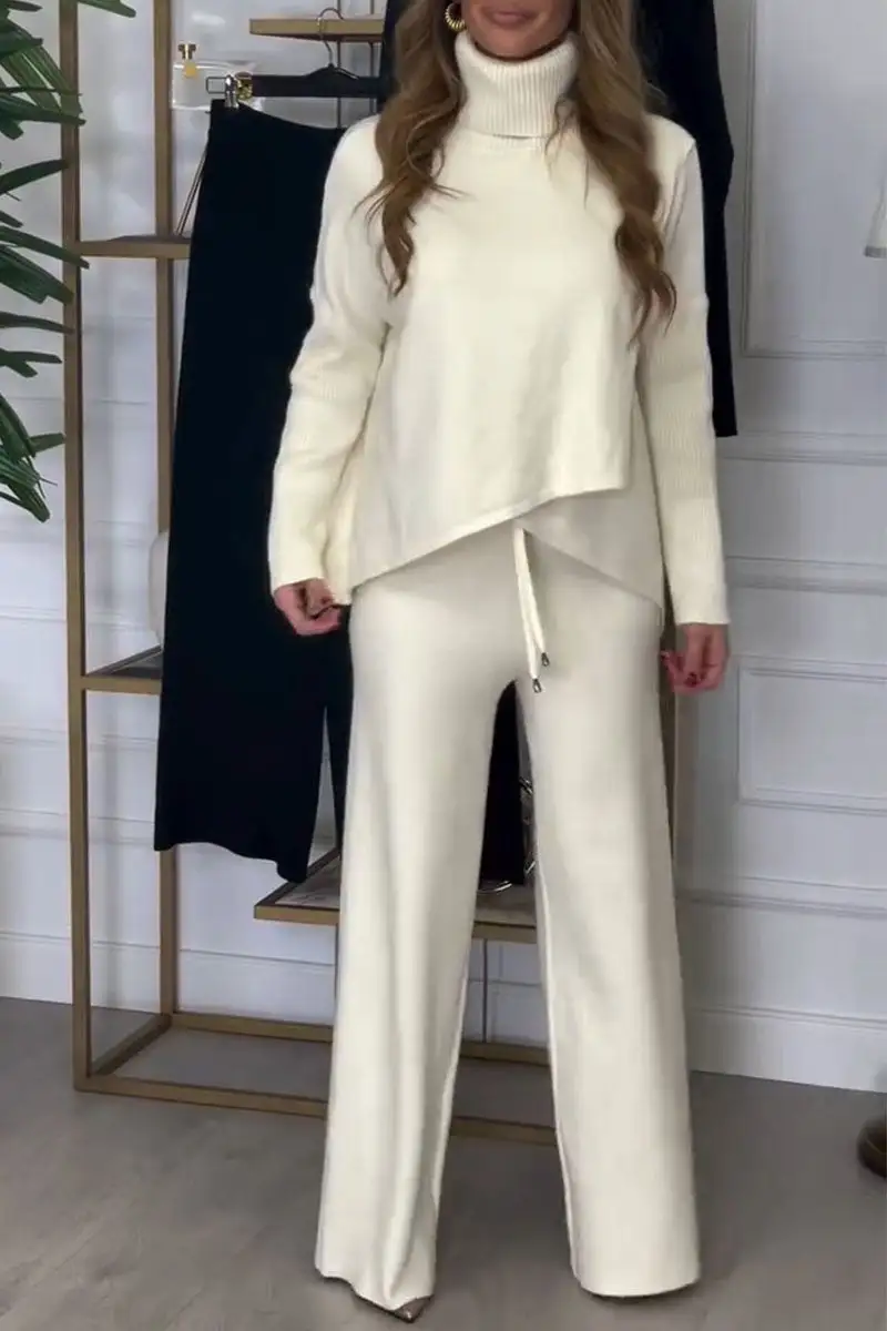 Women's Solid Color Turtleneck Sweater and Trousers Two-piece Set