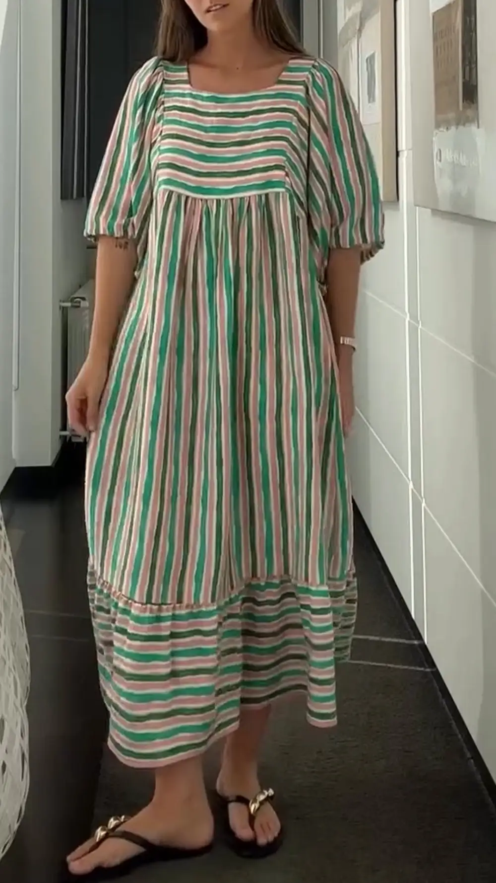 Women's Square Collar Mid-length Sleeve Striped Casual Dress
