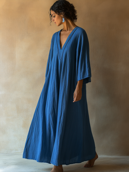 Women's V-neck Linen Kaftan Dress