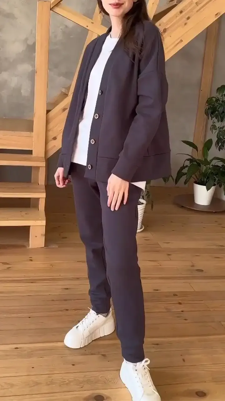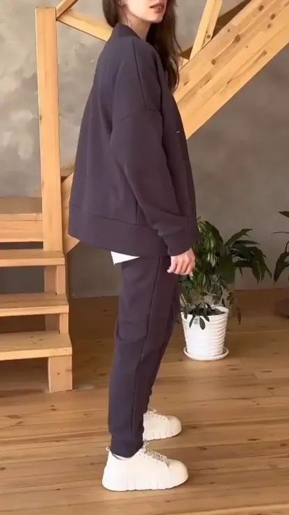 Women's V-neck Long-sleeved Casual Sweatshirt Suit