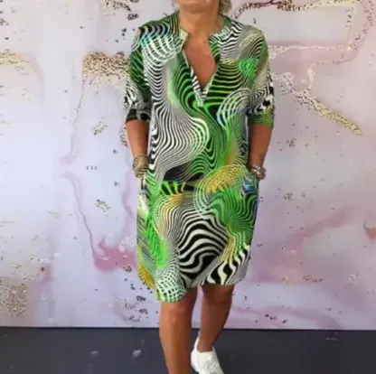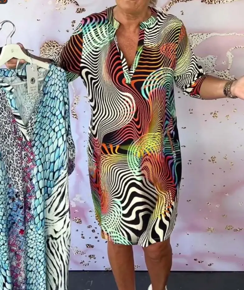 Women's V-neck Mid-sleeve Printed Casual Dress