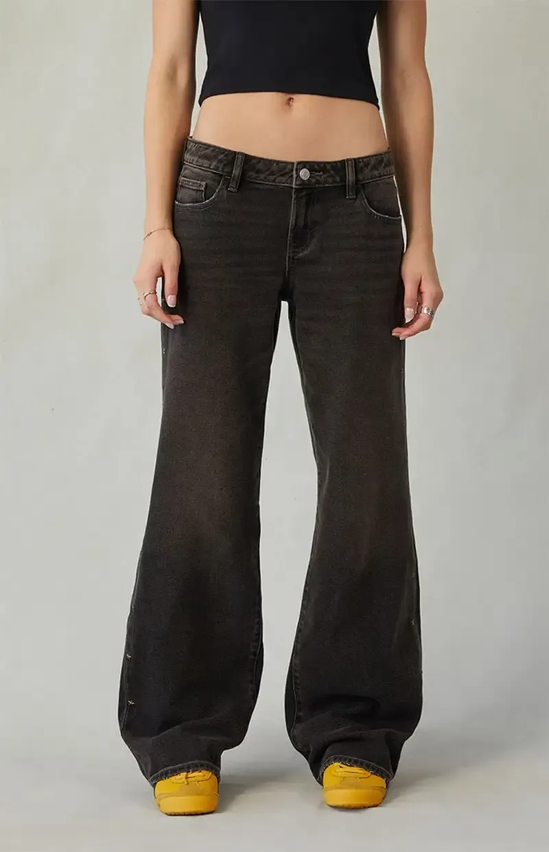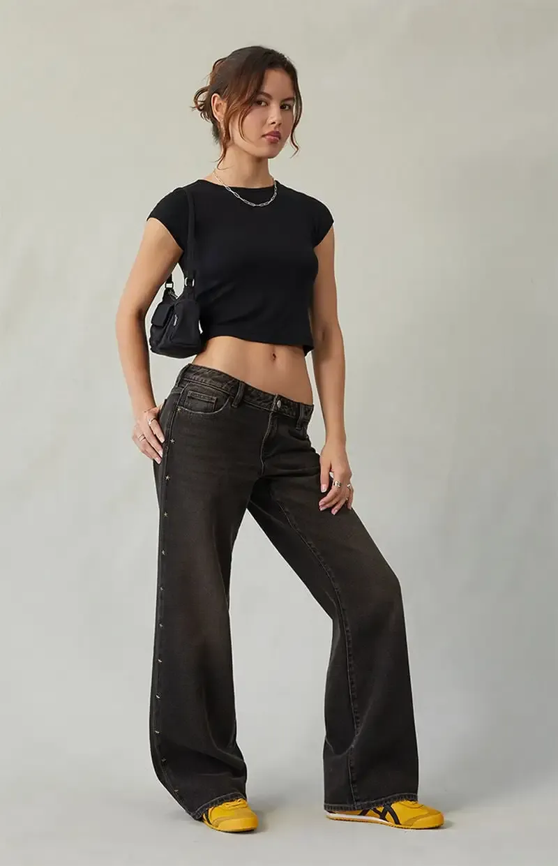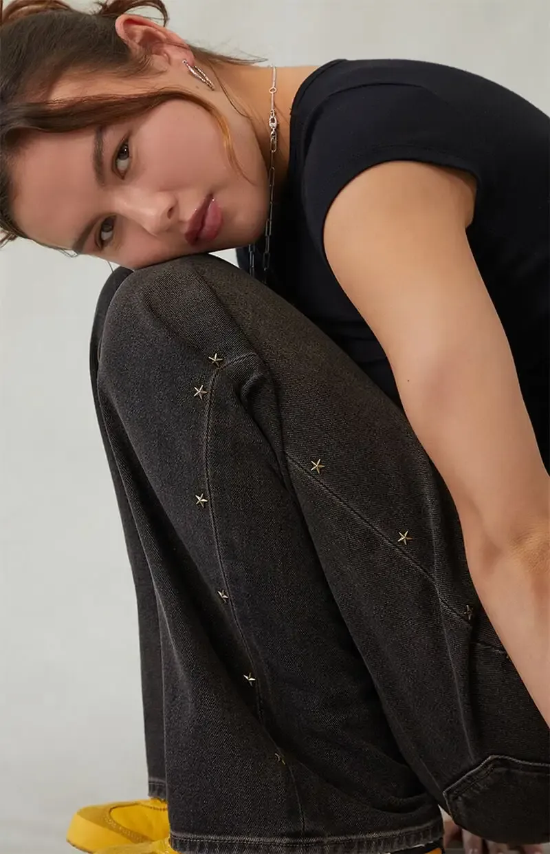 Zoe Low Rise Girlfriend Jeans Star Stud Black